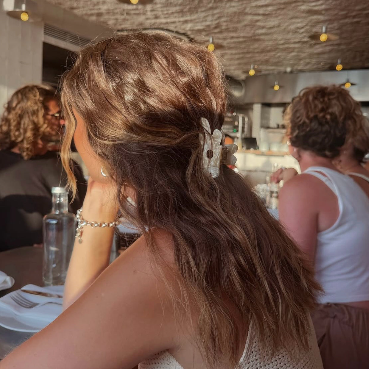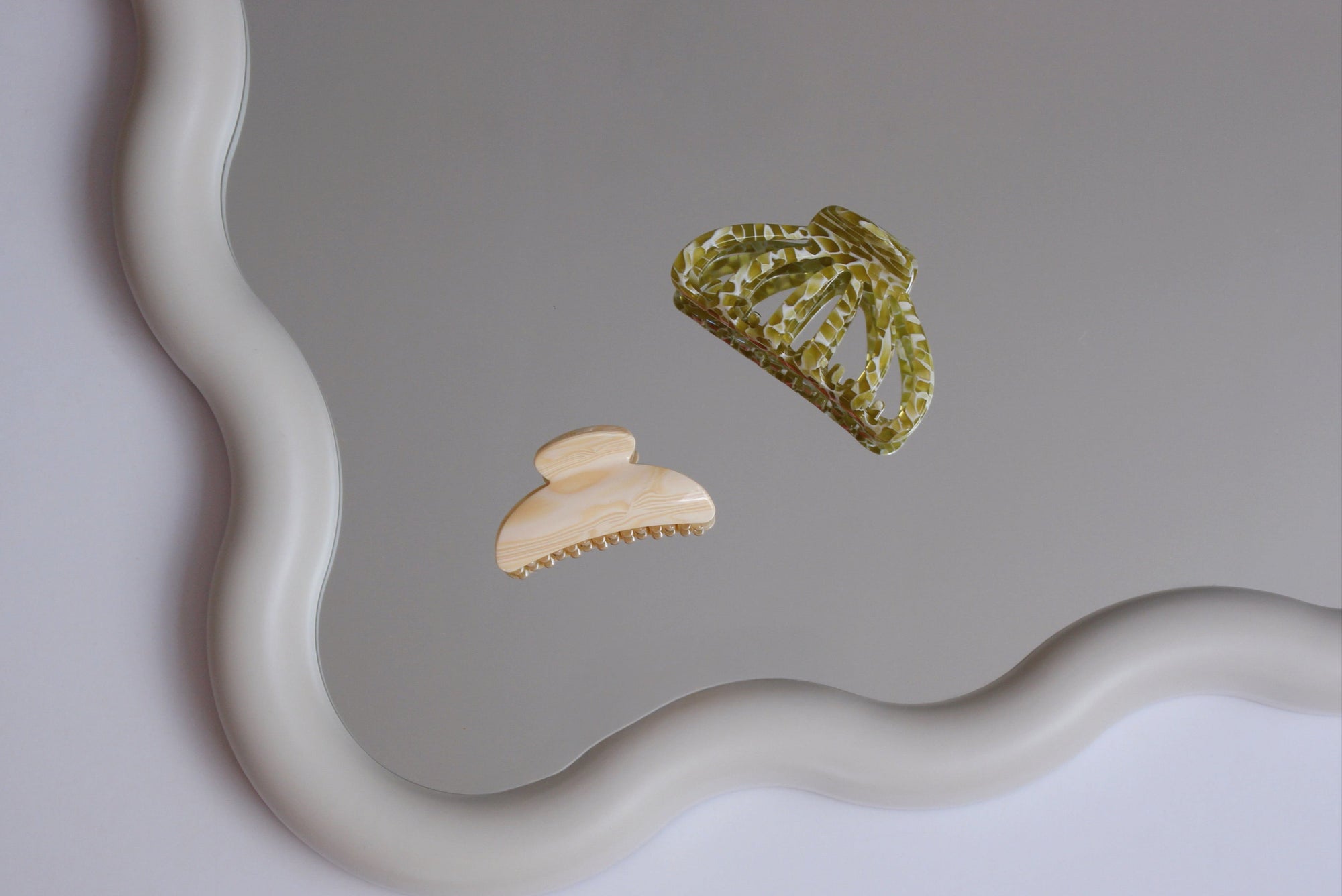 All of our accessories (excluding the metal parts) are made from an eco-resin, which is made from renewable raw materials obtained from wood and cotton. The hand-poured resin means all clip patterns are unique.