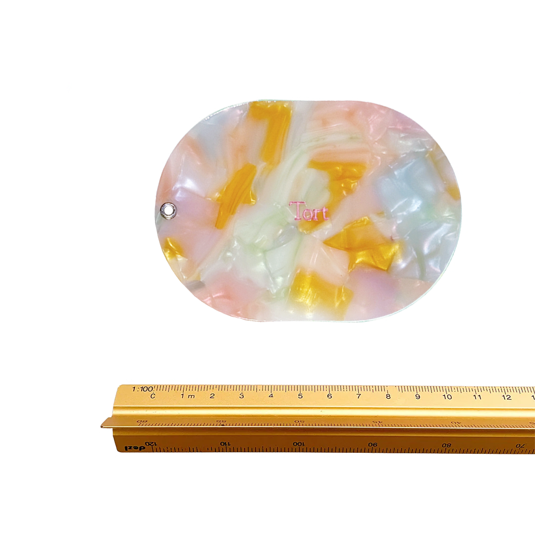 Colour: a multi pastel marble resin with pink logo