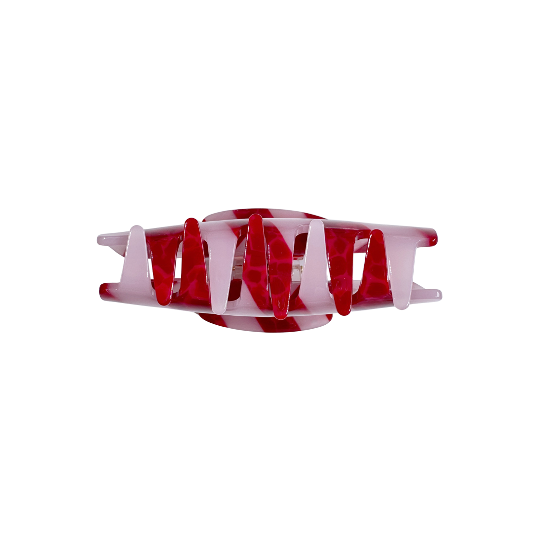 A medium sized silhouette claw in our signature stripes. Two resin patterns are merged together to create a colour combinations of dreams. The medium size makes it very easy to use and perfect for an all up look or securing a bun. For shorter hair it can be used for an all up look.