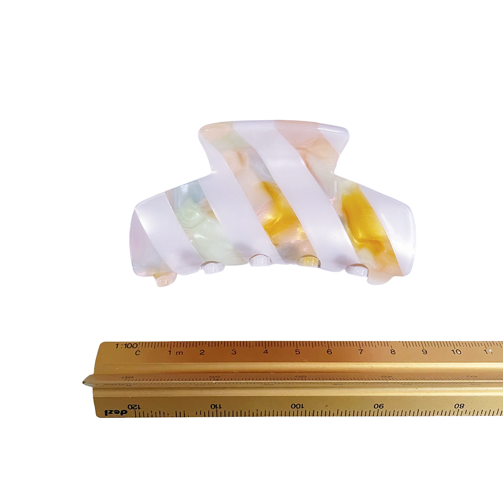 A medium sized silhouette claw in our signature stripes. Two resin patterns are merged together to create a colour combinations of dreams. The medium size makes it very easy to use and perfect for an all up look or securing a bun. For shorter hair it can be used for an all up look.