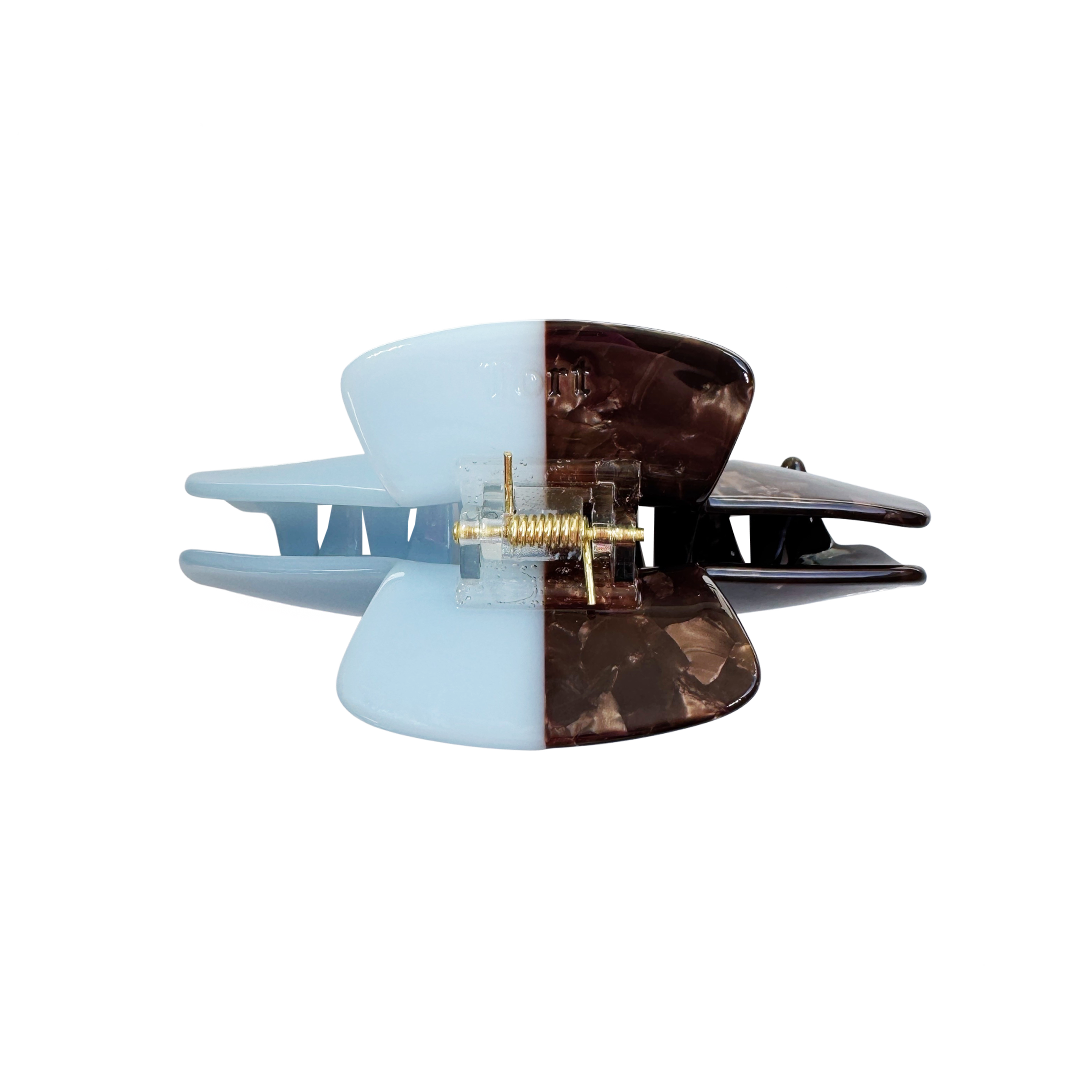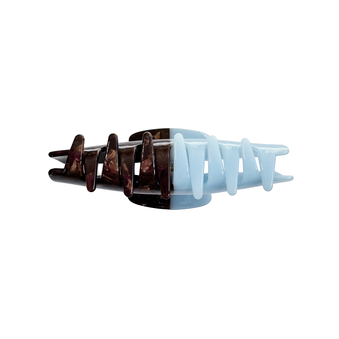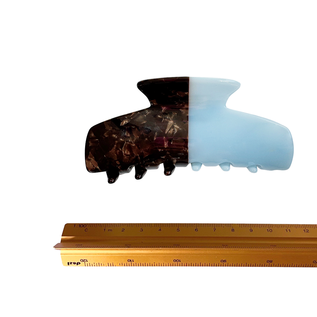 A medium-large sized silhouette two-tone claw in a colour combinations of dreams. The large size makes it very easy to use and perfect for an all up look. For shorter hair it can be used for an all up look. Please note this is the larger version of the original LORA clip.